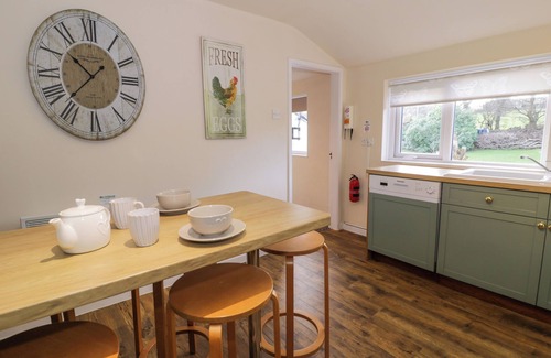 Amenities: Electric central heating. Electric oven, induction hob, microwave, fridge, dishwasher, toaster, kettle. Freeview TV, pool table, and WiFi. Fuel, power, and starter pack for woodburning stove inc. in rent. Charging for electric cars is not included. Bed linen and towels inc. in rent. Highchair and travel cot available on request. Private driveway parking for 2 cars. Enclosed front patio with furniture. Enclosed rear garden with lawn and furniture. Two-behaved dogs welcome. Sorry, no smoking. Shop 1.1 miles, pub 1.3 miles, river 0.8 miles. Note: £20 pet fee per dog. Note: Dogs to be kept under control in rear garden. Note: Open-tread staircase, please take care