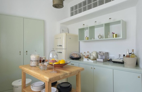 The villa consists of three independent homes. All perfectly set up to offer unforgettable times with friends and family as well as plenty of room to enjoy some independent time as well. On the lower floor, one studio apartment with one double and one single bed, fully equipped kitchen and bathroom with shower. The door overlooking the street, one of the most photographed doors of last summer, and the traditional mule door to the front yard, offer two entrances to the studio.