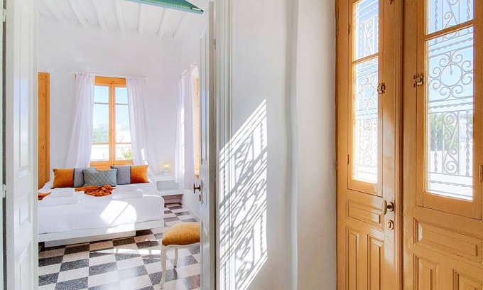 This 1900 historic central villa, has been restored and renovated to stylish and comfortable standards. A perfect base for island exploration, nightlife and entertainment, within meters from vibrant Apollonia. Located In its upper central neighbourhood, a few steps from the beginning of the traditional paved path to Ano Petali village.