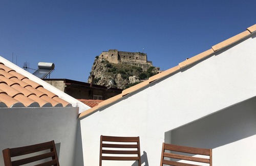 Il Castello apartment is a house for your holidays in Scilla characterized by a terrace, with adjoining outdoor kitchen, from which you can enjoy an unparalleled view of the sixteenth-century castle of the Ruffo di Calabria, built above the mythical rock of Scilla, and where you can have lunch and dine outdoors enjoying spectacular views.