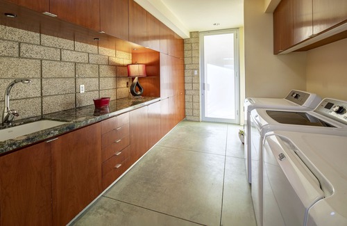 Located on a secluded, prestigious street above downtown Palm Springs, Il Cielo has neighbors, but you won't see them (and they won't see you). Pull into your private parking area and choose from 5 bedrooms, each with its own en-suite bath and private entry. Sneak out for a late-night swim; each bedroom has an access path to the 40" pool and jacuzzi.