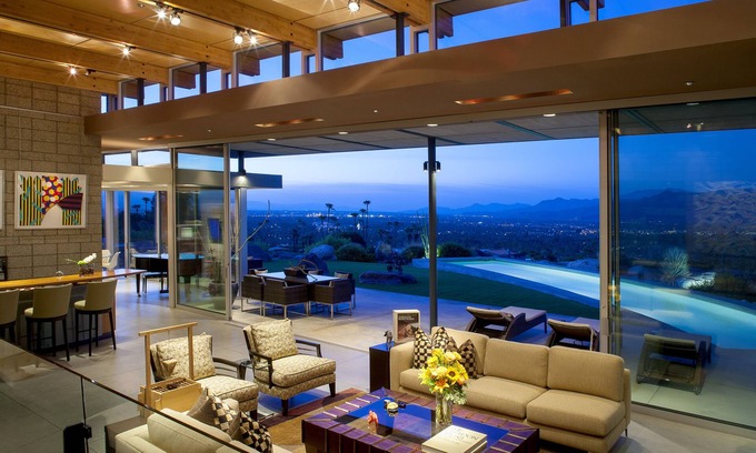 Welcome to Il Cielo Palm Springs—a mountaintop estate with a story to tell. Walls of glass frame incredible views of the desert's mystical beauty. After sunset, the glittering panorama of this desert city unfolds.