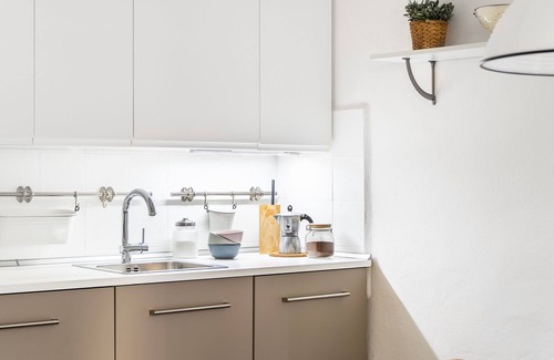 IL CORTILETTO Apartment is a recently renewed family historical place with its own entrance directly from one of the main stairways of town. Fitted with heating, AC, high speed Wi-Fi and satellite TV, it offers two wide and comfortable bedrooms, one master and one double, a bathroom, large open space with fully equipped kitchen and living room. The living room has a brand new sofa bed that can accommodate two more people and be folded back in a comfortable sofa during the day time. The double room has a little nice small balcony from which you can admire a glimpse of lake and the many boats approaching the shore during the day time. The apartment also offers you the possibility to sit and relax in a delicious patio filled with flowers just in front of the house entrance where you can enjoy a quiet breakfast in a sunny summer morning or just read a book and listen to the town’s sounds and melodies while drinking a glass of Italian wine.