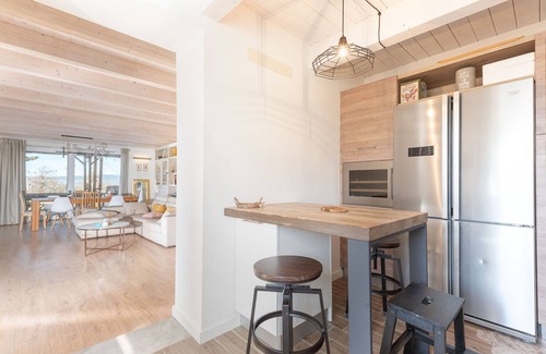 8-room house 300 m2 on 2 levels. Spacious and bright, tasteful furnishings: open large living/dining room with panoramic window with dining table, flat screen and air conditioning. Exit to the garden, to the terrace. 1 double bedroom. 1 room with 1 bed. 1 small room with 1 bed. Kitchen (oven, dishwasher, 4 induction hot plates, toaster, kettle, microwave, electric coffee machine). Shower/bidet/WC, bath/shower/bidet/WC. Upper floor: living room with 1 double sofabed, dining table and TV. 2 rooms, each room with 1 bed, 1 double bed and air conditioning. 1 double bedroom with air conditioning. Open kitchen (4 induction hot plates, microwave, electric coffee machine). 2 showers/bidet/WC. Wood heating. Solar power. Facilities: washing machine, iron, mosquito net, baby cot for up to 2 year olds, hair dryer. Internet (WiFi, free). Parking at the house. Maximum 1 pet/ dog allowed. No internal connecting door between the floors. The house consists of one large flat on the ground floor and two on the first floor, there is no internal connection between the floors, the two flats on the upper floor have a common internal staircase for access. IT053024C25B9M6GEN