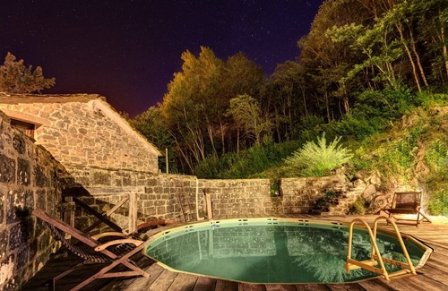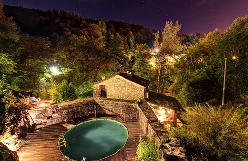 Privacy is guaranteed. The structure is located in the middle of nature, with the exclusive and independent use of the small park on the river, the surrounding chestnut forest and the natural bathtub that is dug into the rock where a round pool of diameter 5 meters. The pool is equipped with inflatable chaise longues. The herb garden, adjacent to the pool, is a place dedicated to reading a book or drinking a good glass of wine and in the meantime be delicately wrapped in aroma of mint, rosemary, wild fennel, sage and origan.