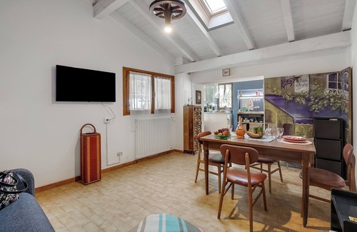 Nido del Ciabattino is a rustic pet-friendly apartment perfect for couples. This cosy space combines comfort with a tranquil setting. The apartment features an open-plan living area with a double sofa bed. The kitchenette features a dishwasher, electric kettle, microwave, toaster, cooker hob, and fridge. Enjoy modern amenities such as free Wi-Fi and a Smart TV for entertainment.