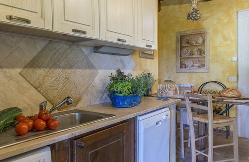 The completely fenced-in property covers an area of about one hectare. A short dirt drive flanked by walnut trees and oleanders takes guests to the parking area just outside the main entrance. The inner park which surrounds the house is a beautiful botanical garden characterized by extensive manicured lawn areas dotted with olive trees, cypresses, palms, cycads, poplars and walnuts. On one side of the house is a large, well-stocked orchard (plums, pears, apples, figs, raspberries), while on the side of the pool is a large portico surrounded by jasmine and rose bushes which form the perfect setting for outdoor dining or for enjoying quiet relaxing moments in the comfortable outdoor seating areas. Next to the outdoor dining area is a stone-built barbecue.Please notice that photos are taken in spring, therefore flower blossoming, and the colours of the gardens' grass could be different at the moment of your arrival at the villa.