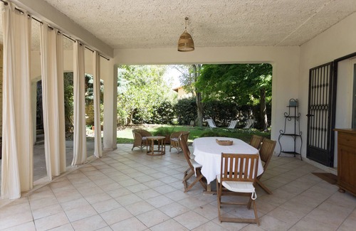 The Patio, approximately 80 square meters, features a large furnished porch, a living room with a kitchenette, a sitting room, 1 master bedroom, 1 bedroom with 3 beds, and 2 bathrooms. The garden surrounding the Patio is equipped with an old barbecue, perfect for organizing barbecues on warm summer evenings. The pool, open from June 15th to September 15th and furnished with deck chairs and sun loungers, is shared with any guests of the second apartment, La Quercia. The large surrounding garden offers many cool spots in the shade of trees.