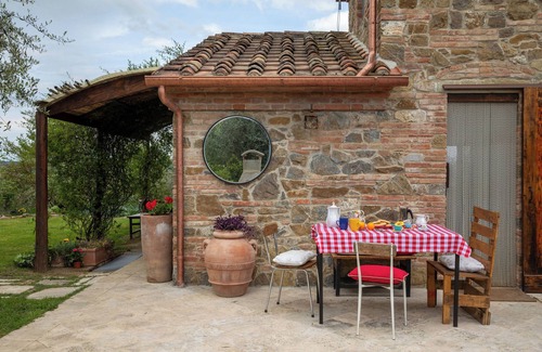 Ideal for three people, the villa is surrounded by olive groves and immersed among the Tuscan hills in the heart of Valdichiana. A strategic place to visit the beauties of Val d'Orcia and Chianti Sienese. The property has a large surrounding grounds and a private garden furnished with outdoor furniture to enjoy pleasant outdoor meals. From the terrace upstairs you can enjoy stunning views of the valley.