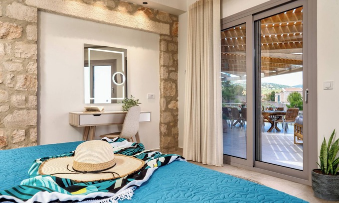 Best-rates for the Skinaria villa starts from $696 per night with includes Air Conditioner, Entertainment, Pool, Private Pool, Bedding/Linens, Wellness Facilities, Kitchen, TV, View, Ocean View, Security/Safety, Barbecue/Outdoor Cooking, Internet, Laundry, Balcony/Terrace, Child Friendly with all other amenities. Perfect for Weddings is committed to ensuring every guest experiences a comfortable and extraordinary stay, whether planning a romantic getaway, a honeymoon, a pet-friendly stay, or celebrating with the entire wedding party.
