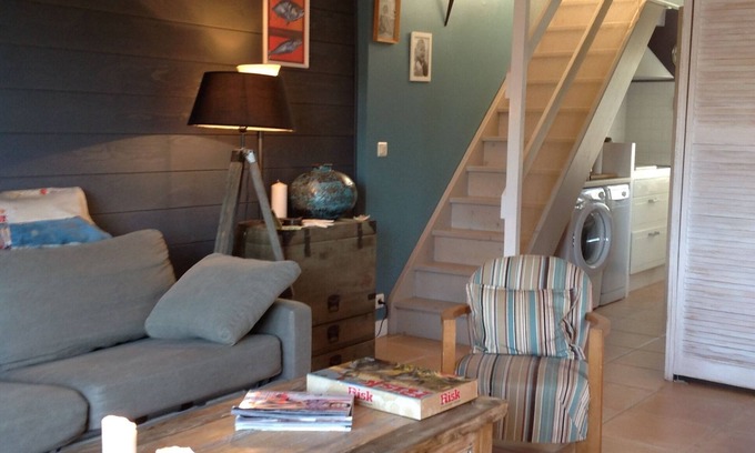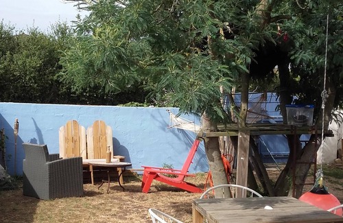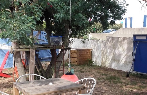 Upstairs, 1 bright bedroom with 2 single beds.The garden is closed and not overlooked, it is 400 m2 and is facing south. You have at your disposal a barbecue, two garden furniture, deckchairs and for the little ones a cabin in the mimosa. Arrivals are from 2 PM and departures before 12 PM