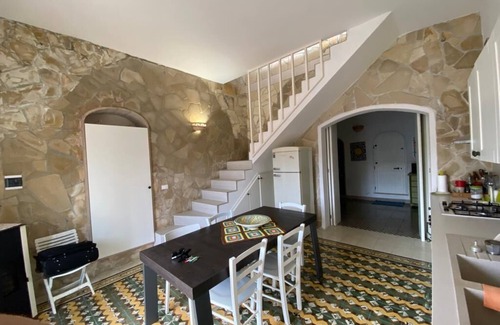 Three-room apartment with 2 double bedrooms (1 on the first floor with the possibility of adding 1 single, 1 on the ground floor), kitchen, dining room, 2 bathrooms, habitable terrace. Furnished house, also complete with air conditioning, washing machine, mosquito nets.