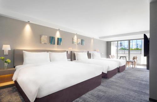 Ideally located in the center of Taipei, set at Dunhua tree-lined boulevard. ILLUME TAlPEI is conveniently connected to the major transportation stations and landmarks in Taipei. MRT Nanjing Fuxing Station and Taipei Arena are both within a walking distance of the property. It only takes 5 minutes to drive to Taipei Songshan Airport from the hotel. Extras offer shuttle service between the hotel and Taiwan Taoyuan International Airport. The famous Taipei 101, East District shopping area and Xinyi shopping area are 2.5 mi away. Featuring city views, all rooms and suites are air-conditioned and are fitted with a flat-screen TV, refrigerator and electric kettle. Certain room types include a coffee machine, mini-bar and sofa. The private bathroom has bath or shower facilities and hairdryer. Free WiFi is available throughout the property. Guests can workout at the fully equipped fitness center, unwind in the outdoor swimming pool and using the sauna during their stay. Various events and conference for 8 to 1,000 people can be hold at the high-ceiling ballroom or at the 13 meeting rooms. ILLUME TAlPEI is renowned for its gastronomy including SUNNY BUFFET which serves international cuisines; Magnolia Court is a Chinese restaurant famed for its Zhejiang, Cantonese, and Taiwanese dishes.