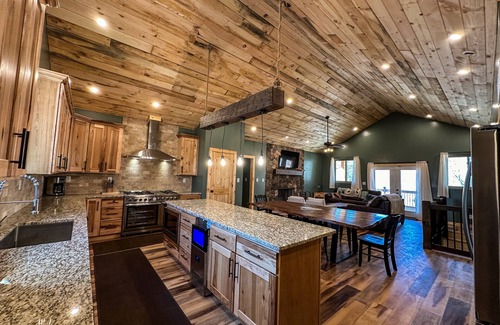 Immerse yourself in comfort and luxury while you stay at this lodge. As you enter the property you will be blown away by the beauty of the woodwork & stonework. Equipped with an immaculate, commercial grade kitchen which features stainless steel appliances, granite countertops & hickory cabinets.
