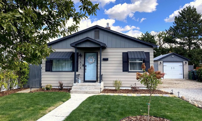 BLUE SKY RETREAT is in beautiful Meridian, just minutes from Boise. It is well furnished for you to stay for a few days, or a few weeks. For the price of a local hotel room, you'll have a full two bedroom house with a generous kitchen space, dining table that seats up to 8, a breakfast bar and a comfortable living room with large HD smart TV. The home is clean, the furnishings are stylish and fresh, the atmosphere is comfortable. The fenced yard has plenty of grassy space to play with the provided lawn games on this 7000 sq foot lot with fruit trees and a firepit. From this ideal location, you can walk, bike or hop in the car to enjoy the nearby restaurants, grocery stores, shopping and activities.