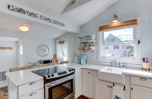 Cottage Seas is the picture perfect beach cottage getaway. This newly renovated two bedroom, one bath cottage is right out of a magazine and just a stone's throw from Roger Wheeler State Beach/Sand Hill Cove, one of New England's most beautiful beaches and overlooking Block Island Sound. The home is equipped with everything you will need for your stay down to the Lobster Pot and crackers. A nice outdoor patio and fire pit is a perfect place to wind down and relax after a day at the beach.