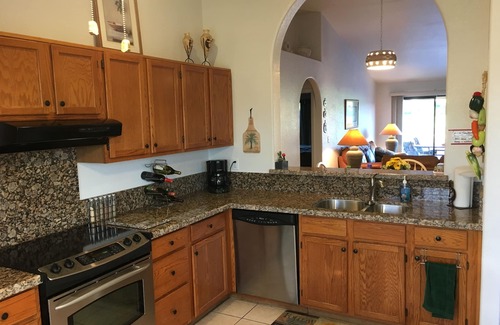 The eat-in kitchen is fully equipped. The refrigerator has a working ice maker. The combination living and dining room area is bright and spacious with comfortable reclining leather seating. A gas fireplace will warm you if the evening is cool, while you are entertained by a SMART TV, a DVD player, or Dish Cable TV. There is NO land-line phone available. Internet and wi-fi is included.