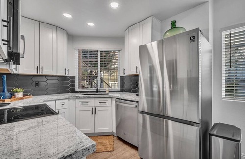 Perfect for couples and singles open to an extended stay. Work here, relax here. All neighboring communities a short distance. Midcentury design with high end decor - WiFi, Cable, 1 Covered Parking Space, 2 Pools (1 heated) and 2 Hot Tubs. BBQ located near the pool.