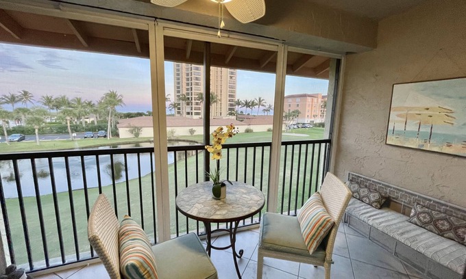 You can take a two-minute walk to the beach for shelling, fishing and swimming, Tiki Bar, restaurant, shuffleboard, basketball, fitness center, library, hot tubs, showers and sauna. You will be able to sit on your patio while overlooking the 1st hole of the well-maintained executive course, see and hear the ocean, watch the sunrise and sunset. Bicycle racks are located in our cluster and bikes can be rented from Lisa Rentals, or rent an e-scooter so you can ride to one of the nearby restaurants for a bite while listening to music.