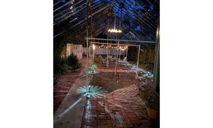 Located in the center of Sedalia, your stay will be in one of city’s oldest florist and greenhouses. This gorgeous 1910 building is modernized into an extraordinary home with every comfort needed and artistic flair. Historic Liberty park, swimming pool and new Community Center are one block away. Our open air greenhouse is an enchanting place to relax, BBQ or host your private event under the stars. Raining? Stay in and enjoy 3 large tv’s, WiFi, pool table, darts, books and board games!