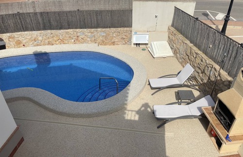 Impeccable 3-Bed Villa in Hancienda del alamo is located in Fuente Alamo de Murcia. Impeccable 3-Bed Villa in Hancienda del alamo provides accommodation, featuring Pool, TV, Bedding/Linens, among other amenities. This Villa features Pool, TV, Bedding/Linens, to make your stay a comfortable one.