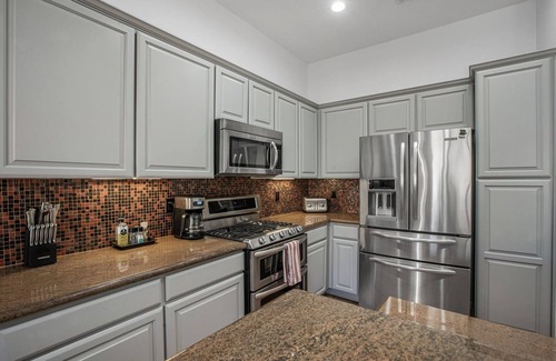 Fully updated kitchen with stainless steel appliances.