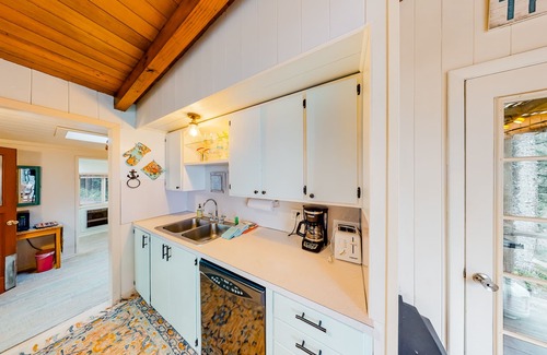 You'll love the convenience of having a full kitchen here! Just stock the refrigerator and cabinets with groceries and vacation meals will be easy to prepare! There's even a small gas grill on the deck if you want to grill outside, surrounded by the large backyard. If you do want to venture out for meals, a short drive north will take you to Fishtails Cafe for breakfast or lunch - and after crossing the historic Yaquina Bay Bridge, you'll have even more dining options on Newport's bustling bayfront.