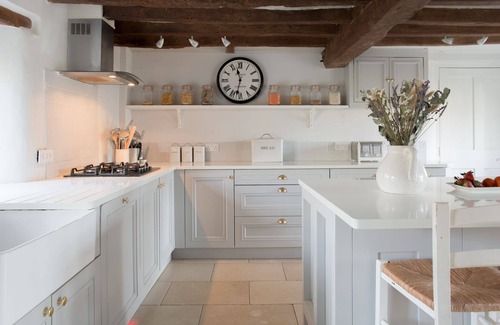 Yew Tree Farmhouse is an impressive Georgian farmhouse with plenty of charm and space, set in a rural location close to the market towns of Fairford, Lechlade and Highworth. Internally, this large Cotswold holiday home includes a country kitchen with AGA, plus adjacent breakfast room. Furthermore, there is a separate dining room, which can comfortably seat 12-14 and there is a superb sitting room to relax on sofas arranged around the wood burner. There is also a downstairs study, with adjoining loo and shower room. Upstairs over two levels, there are 6 bedrooms and 5 bathrooms, so the farmhouse can easily accommodate large family and friend celebrations.