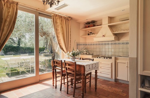 Outside, in the garden, jade table and chairs under the shade of a centenary olive tree are available to relax with a good book or for outdoor dinners.