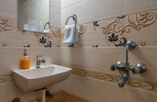 Bathrooms have a shower n a commode.Shampoo,conditioner, shower gel and hand soap bar are also kept on arrival and not replenished . cleaning alternate day except sun but with no linen change