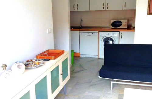 Nice apartment with large terrace which is accessed from the living room from the room with two beds and from the master bedroom, located by the sea. It also has a fully equipped with bath and shower, bathroom and a bright kitchen with all appliances and utensils. In it you can enjoy your swimming pool overlooking a beautiful cliff, covered for your enjoyment during the winter season, also their paddle court and stone barbecue outdoors. Along with urbanization will enjoy splendid dive times at the dramatic seafloor hidden in the cove.