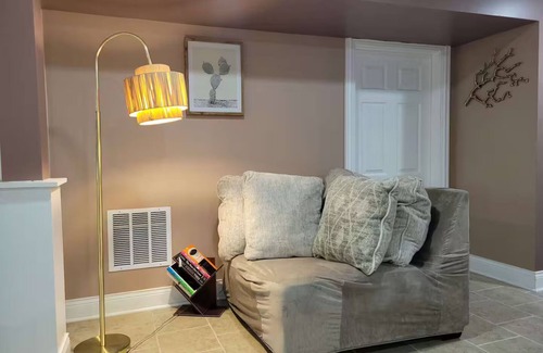 The listing is the basement of a single family home. The family that stays here has a toddler and will be on the main floor. This is their home, and you are a guest in their home.