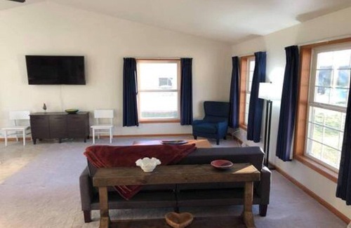 This two bedroom, two bathroom house includes vaulted ceilings, open kitchen design, and a back sitting room that has big viewing windows that overlooks a pasture and an Amish farm. The kitchen and dining area include the perfect place to host family members for the holidays or for gatherings with a beautiful oak dining table. The kitchen is fully furnished for entertaining and there is covered parking in an attached garage as well as a washer and dryer available for laundry. There is a sleeper sofa that can sleep 1 person depending on size, and a queen-sized inflatable bed with legs. We offer the standard booking price for four guests, and $10 per guest after that. There is an early check-in fee. If desired please make request in a message. Kalona offers restaurants for an unforgettable, unique evening dining experience.