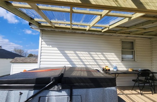 has two twins. Fully stocked kitchen and enjoy the stars from the hot tub! House is located on a culdesac