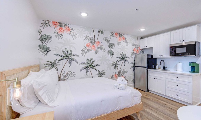 - Modern Amenities: Enjoy hotel-like comforts with a fully equipped kitchenette, smart TV for entertainment, and complimentary Wi-Fi access to keep you connected during your stay.