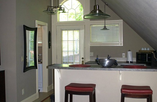 Located in the center of the Dickson Street Entertainment District 1 block from the Walton Arts center, a 5 min walk to the University of Arkansas Campus, and the Historic Fayetteville Downtown Square and Farmers Market, and adjacent to many fine restaurants, bars, music venues, arts venues, and shopping. The property has 2 private parking spaces and a private deck with sitting area and private entrance. The apt has an open floor plan with bedroom living and kitchen area. Bathroom has a walk in, tiled shower, pedestal sink, toilet and washer/dryer. Apt. is fully furnished with all stainless steel appliances including stove/oven, fridge ,microwave, toaster, and coffee maker and includes all kitchen utensils, flatware, and glasses, free Wi-fi and cable.