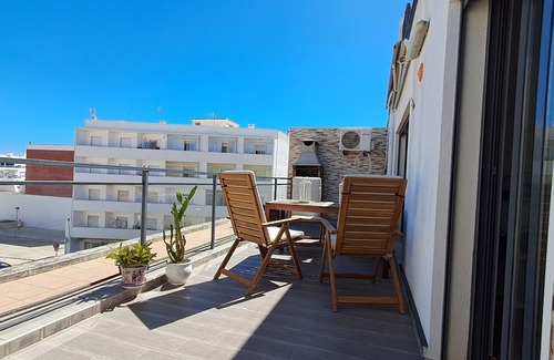 Flat in gated community, with 2 bedrooms, living room with large terrace and BBQ, fully-equipped bathroom, fully-equipped kitchen, 1 free parking space, shared pool. The master bedroom is spacious, with access to the terrace, 1 queen-size bed and a wardrobe. The 2nd bedroom has a wardrobe and two single beds that can be joined together to become a double bed if necessary. The bathroom is complete. The kitchen is fully equipped and has a dining area. Living room with single sofa bed, if necessary, air conditioning and TV. The terrace is spacious and has outdoor furniture for relaxing and eating, as well as a barbeque for grilling, the freshest of which can be bought at the market every morning. The car park is indoors, with a reserved space.