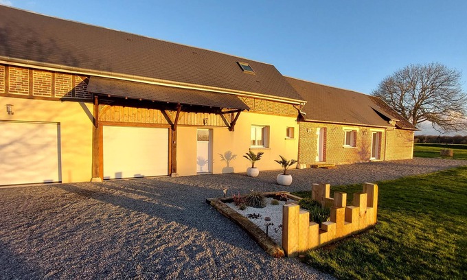 This inviting vacation home is located about an hour away from the beaches of the Channel coast. Enjoy beautiful day trips to the beaches and jump towards the tides. Also be impressed by the white chalk cliffs of the region and take great walks along the coast. But also discover the charming small towns on the banks of the Seine with restaurants and bars near the accommodation. The location between Le Havre and Rouen offers you a variety of activities and allows you to plan your vacation freely.