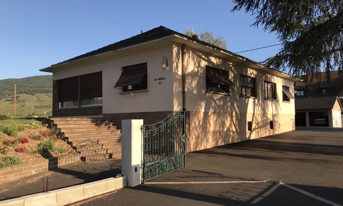Located in the heart of the Alsatian vineyards, Villa "Au Priegel" warmly welcomes you between Strasbourg and Mulhouse, 8 kilometers west of Colmar and only 3 kilometers from Kaysersberg or Riquewihr.