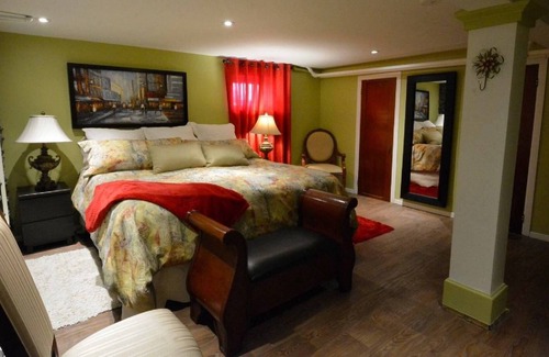 .Under its spring air, the Low Tide room takes you elsewhere, for the time of a getaway. Equipped with a large king bed with private bathroom and a beautiful massage shower in a setting conducive to relaxation. This room located in the basement