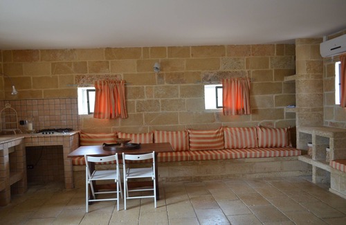 The Capperaia, enchanting, entirely in stone built by the owner, imitating the pajare, typical Salento buildings for the shelter of the tools in the olive groves, is located in front of the swimming pool, is an open space with a kitchenette, a double masonry bed, an antique fireplace in stone that allows a pleasant and romantic stay even in the cold season, it is however equipped with air conditioning. Two beds can be added on request. The bathroom is in Lecce stone.