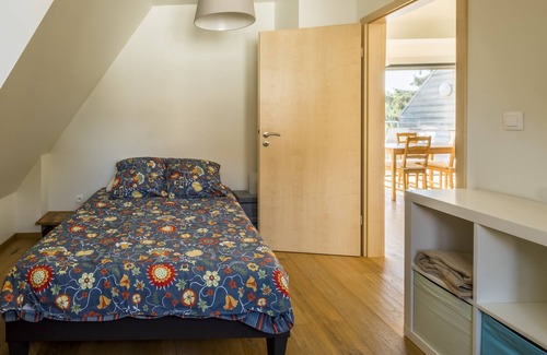 charming apartment (55m2), completely renovated in summer-autumn 2014, the top floor of a detached house in a quiet street and conveniently located at a tram station from the station and the heart of Strasbourg. Large two bedroom apartment with 10m2 terrace, a room for 2 and a sofa bed in the living room. Separate toilet and bathroom, walk-in shower. You will enjoy the quiet places after your days in the city and its museums. Nearby you will find grocery stores, pharmacy, tobacco. You can also enjoy a large park. Cycle tracks will discover the city and its surroundings nicely. If you come by car, you can park for free in the street