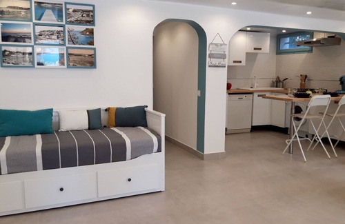 We offer a stay in our villa of 55m ² totally renovated with private access and not overlooked, located 1 minute walk to the creek tamaris and 3 minutes walk to the sandy beach of Sainte Croix.