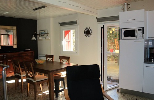 On the level kitchen / dining room, courtyard of 20 m2 with table and 4 seats and parasol.