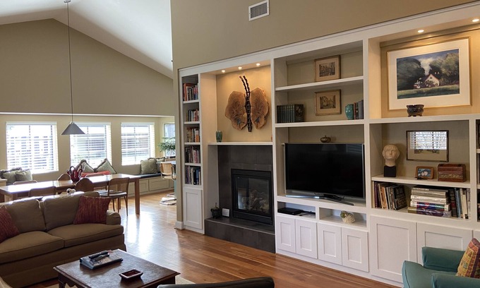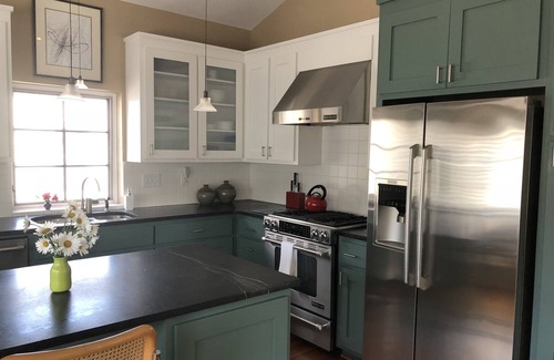Discover what it is like to live as a local in this beautiful 1,427 square foot home, located just off of Main Street in the Village of Blowing Rock, N.C. True to it's name, The Artist's Loft is located above the shop of local Silversmith and Artisan, Gaines Kiker. This lovely contemporary home features an ensuite master as well as ensuite guest room. The spacious, open concept features many windows that allow for an abundance of natural light. Open the french doors to the sun porch and enjoy a morning cup of coffee or an evening cocktail. This specialty kitchen offers stainless steel appliances, a gas range, soapstone countertops, and is fully stocked with cooking essentials to create gourmet meals. Our guest have 2 private parking spaces at the entrance to the home.