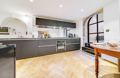 This apartment is a real gem. Located in a listed historic building, it offers an authentic living experience. The stone vaults and period architectural details create a warm and unique atmosphere.