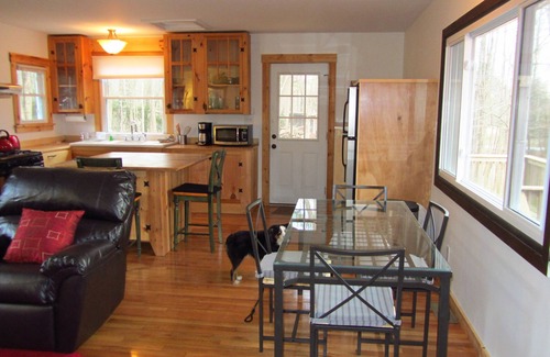Newly renovated, 2 bedrooms 1 bath, with wood-burning fireplace, A private hot tub over looking woods and open land. You can watch deer meander, wild turkey and other birds, while soaking in the hot tub. Or unwind in front of the fire, on cold winter days. Gas BBQ grill on the deck.