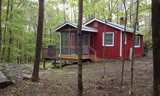 Located in the heart of Woodstock (Glasco Tpyk & Ricks Rd.) this cabin is the perfect romantic getaway. With forest and open land as your backyard.