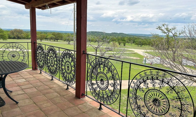 Escape reality and become a part of the history of this 4,500 square foot 1955 spanish-style hacienda. On those cold, rainy days, you can sit, talk, drink or read by one of the four fireplaces in our lodge. We also boast one of the largest outdoor fireplaces in Texas, constructed with over 40,000 pounds of native stone. It’s a great place to sit in the evening, enjoy a Texas sunset, and exchange family stories. There are several porches overlooking the wildlife and the beautiful hill country - as well as a detached game room with a flat screen TV, ping pong table, foosball table, and pool table! Once you're done enjoying the beautiful outdoors, head inside to the spacious kitchen/dining room that caters to big appetites. Relax for the night in the living room by watching a movie on the big screen TV. With 5 Bedrooms and 2.5 Bathrooms, highspeed internet, and a TV in every room - The Lodge is the perfect vacation home for parties of any size!