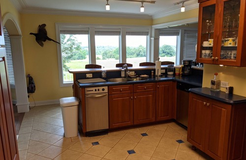 Enjoy the peace and quiet of 215 manicured acres in the country, and stay busy by fishing in the pond or hiking on numerous trails on property.